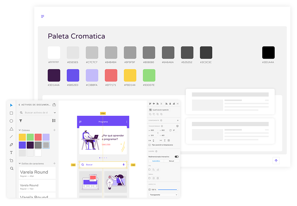 Esto se garantiza mediante un diseño visual con el mayor detalle, el flujo funcional y las pautas de diseño que están listas para enviarse comom un paquete.